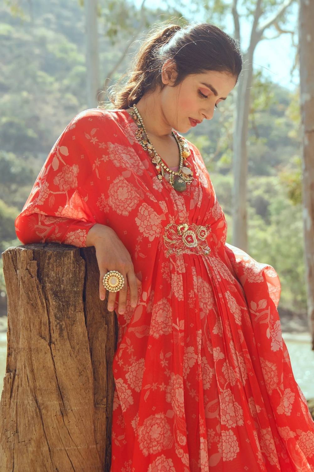 Meet our red and pink chintz print kaftan – a total beauty! With a hand embroidered patch in the center, it is free size and easy to wear.